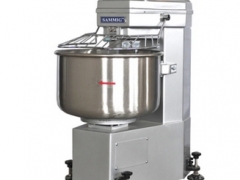 和面机是面食加工的主要设备之一,它主要讲小麦粉与水〔有时加食油、食糖及其他食物和食品添加剂〕混合制成面团。它的应用对减轻工人劳动程度,提高工效,实现文明生产起着极其重要的作用。
